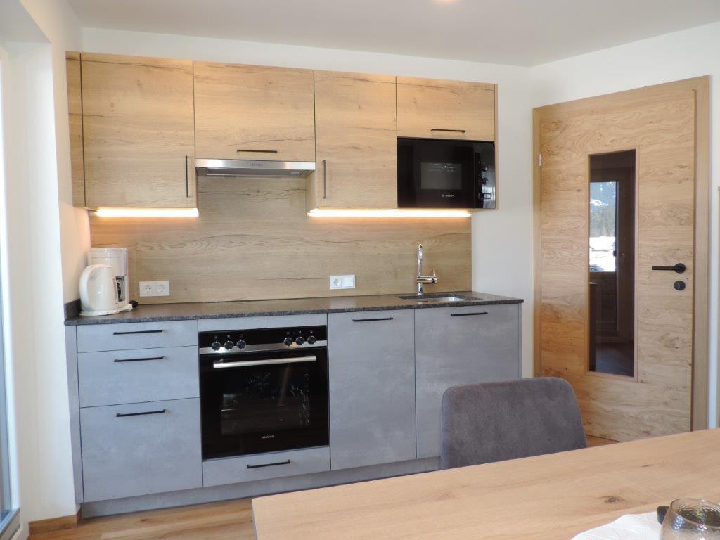 Die Küche ist mit Geschirrspüler, Ceran- Kochfeld mit Backrohr und Dunstabzug, Kühlschrank mit Gefrierfach, Mikrowelle, Kaffeemaschine, Wasserkocher, Toaster, Geschirr, Besteck, Töpfe, Pfannen und Reinigungsmittel voll ausgestattetet.