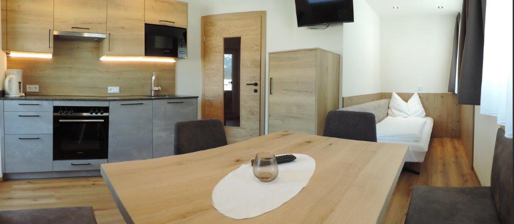 Das Appartement Typ B2 für 2-4 Personen besteht aus einem Wohnschlafraum mit gemütlicher Schlafcouch und Küche, einem Schlafzimmer mit Doppelbett, ein Badezimmer mit Dusche, ein WC und einem Balkon. Im Wohnbereich und Schlafzimmer ist jeweils ein Flat-TV. Ebenfalls haben wir gratis WiFi im ganzen Haus.